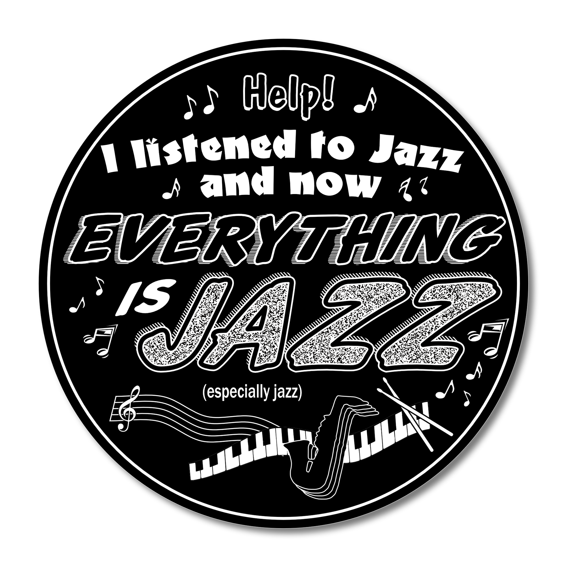 When you listen to jazz and then everything becomes jazz is a serious issue which none of our political candidates ever seem to put on their platform. If you have succumbed to jazz, I have a sticker just for you.