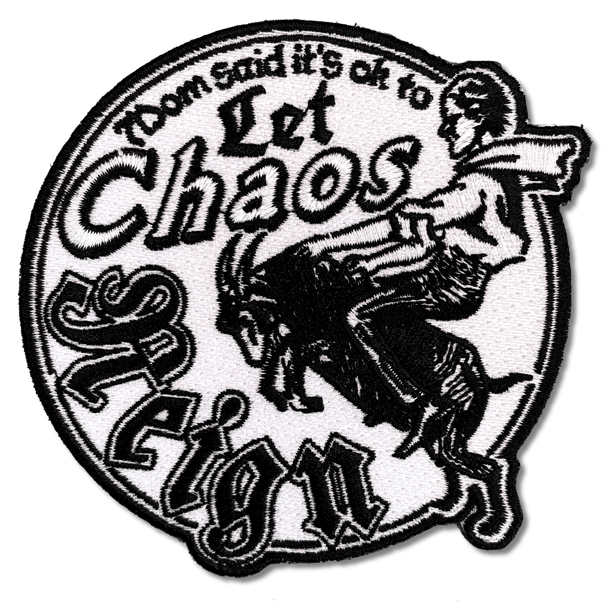Here is a ~9 cm embroidered patch in black and white with iron-on backing that you can still wear even if your mom would never allow chaos to reign.