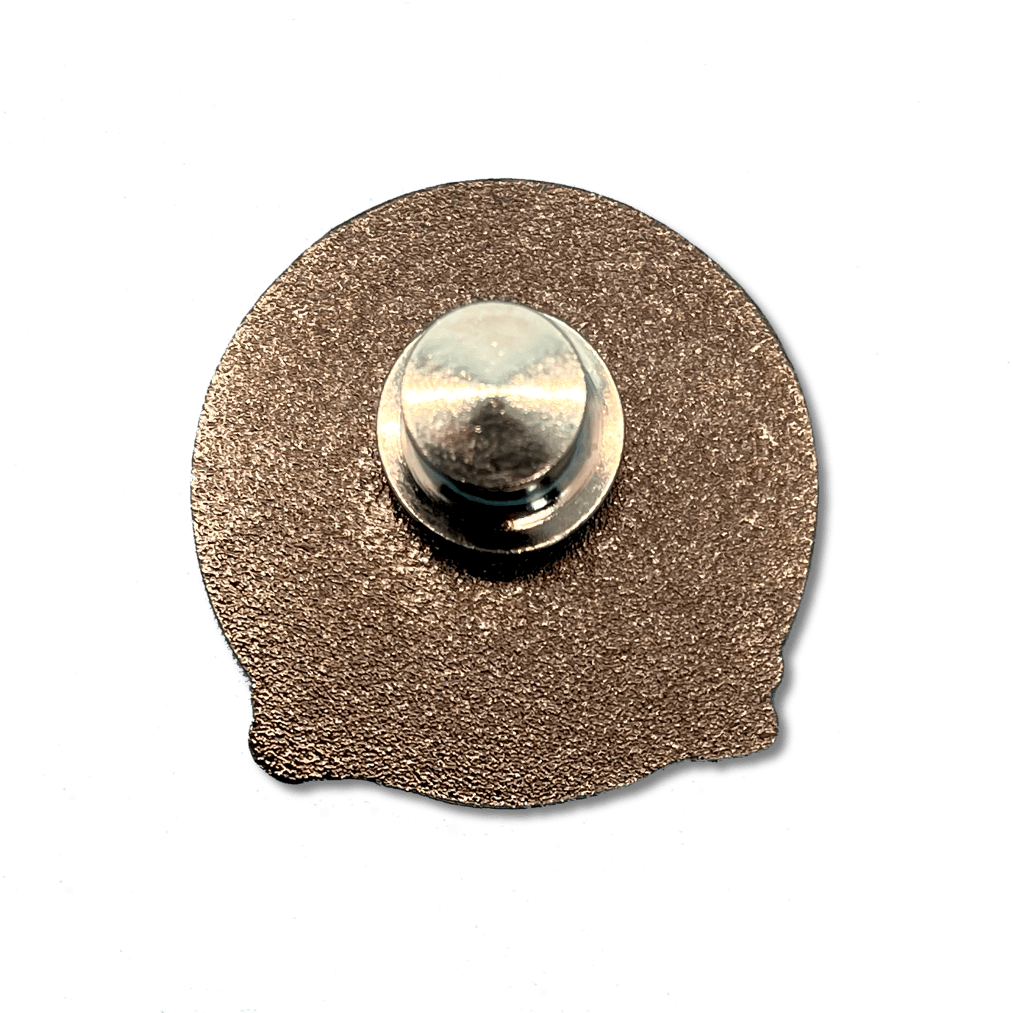 This handsome enamel pin is made of metal with black nickel plating and measures about 2.5cm x 2.5cm. It features a deluxe locking clasp and comes packaged on a cute little card, for your safety and amusement.