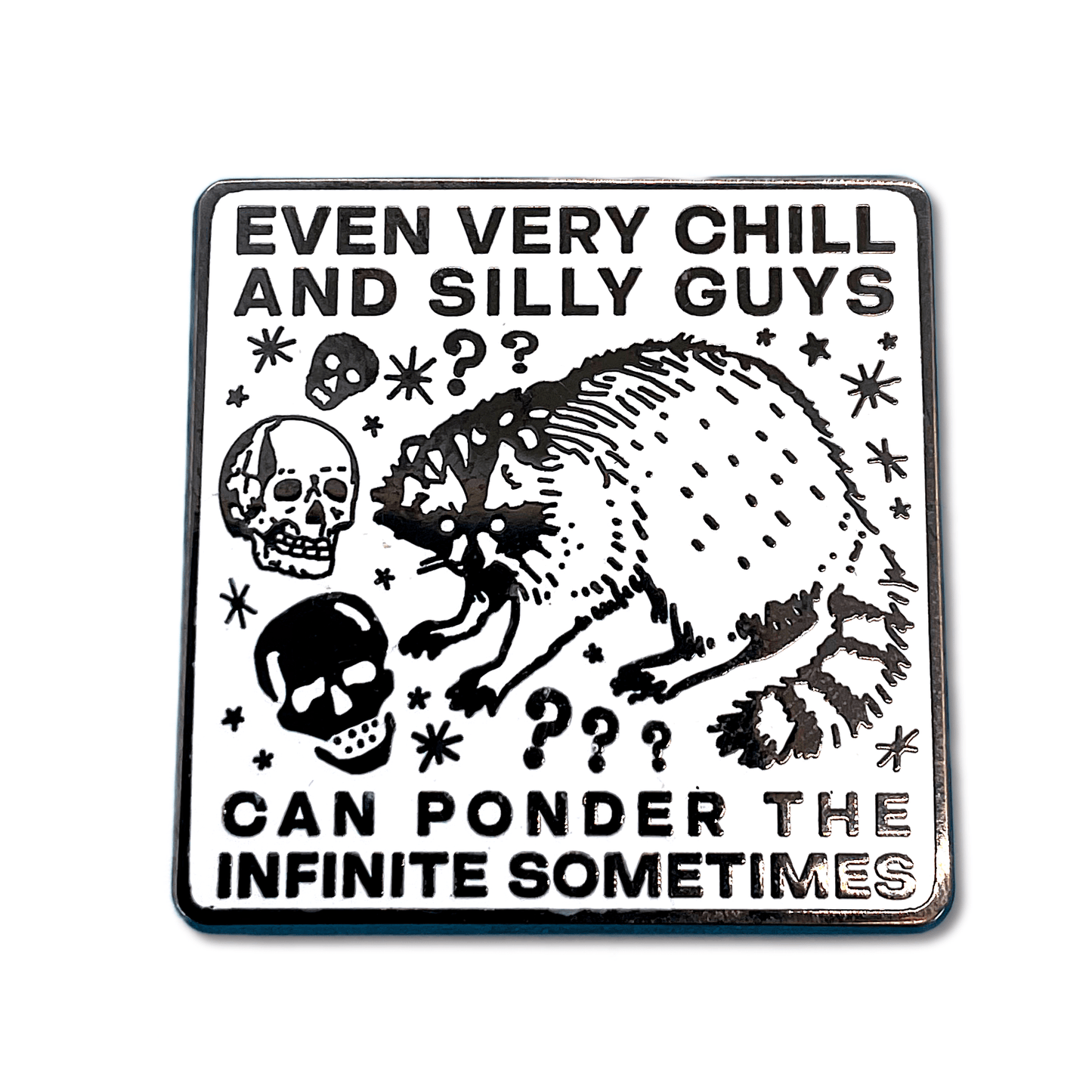 This 3cm square enamel pin is for chill and silly people who also possess unimaginable depth.